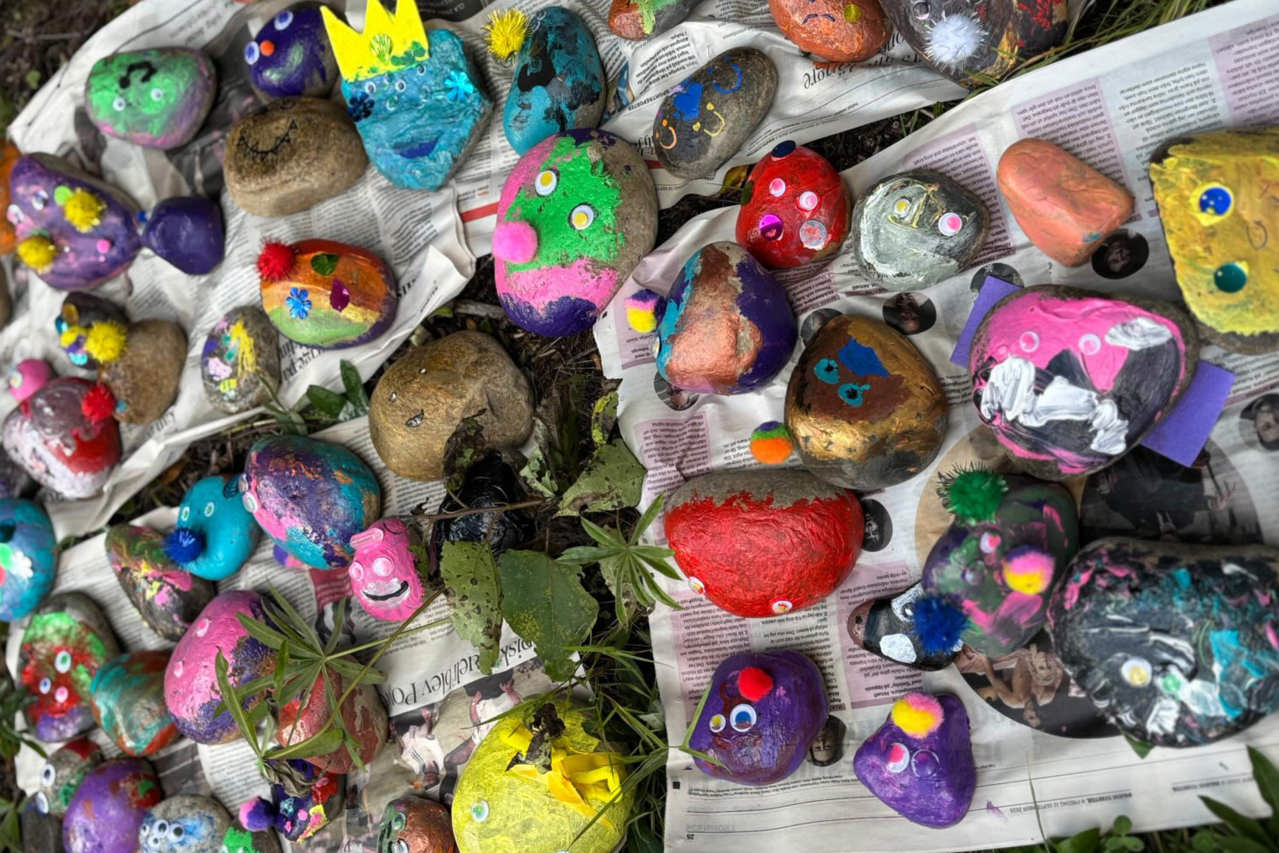 Totalt målades 60 stentroll som när de torkat ska placeras ut på trollstigen. Tanken är att den som vill ska kunna fylla på stigen med egna troll.
